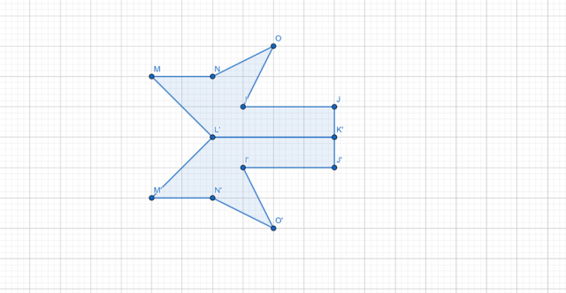 Oś symetrii jest prostą, która dzieli figurę na dwie takie same części. Dorysuj drugą część figury, aby wyglądała dokładnie tak samo, jak pierwsza część; długości odcinków muszą być tej samej długości, wierzchołki figury muszą być w tych samych miejscach, tylko po drugiej stronie osi symetrii.