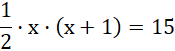 Na rysunku jest przedstawiony trójkąt. Mamy informację na temat tego, ile wynosi pole figury, jaka jest długość podstawy (wynosi ona x) oraz długość wysokości opuszczonej na tę podstawę (x + 1), dlatego równaniem, które ułożymy do tego rysunku, będzie równanie na pole tego trójkąta. W miejsce literki a wstawiamy niewiadomą x, a w miejsce literki h – x + 1.