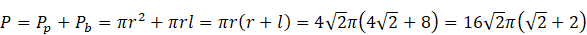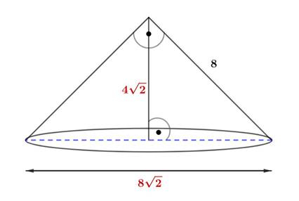 Z trójkąta szczególnego (45°, 45°, 90°) – przekrój osiowy stożka: