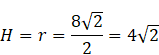 Z trójkąta szczególnego (45°, 45°, 90°) – połowa przekroju osiowego: