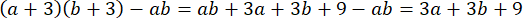 W tym zadaniu przedstaw, o ile mniejsze jest pole prostokąta o bokach długości a cm i b cm od pola prostokąta, którego każdy bok jest o 3 cm dłuższy w postaci sumy algebraicznej.
