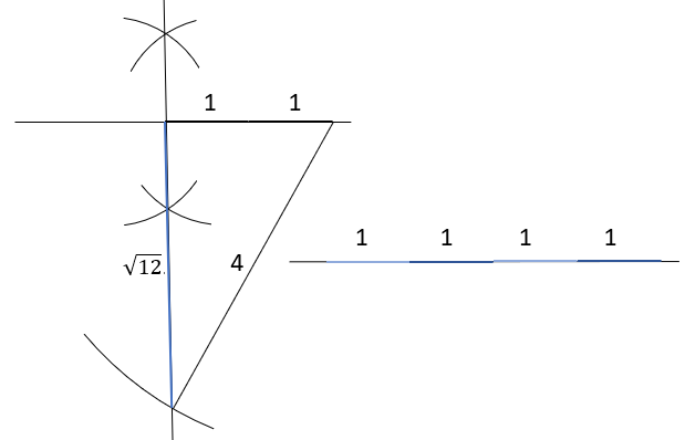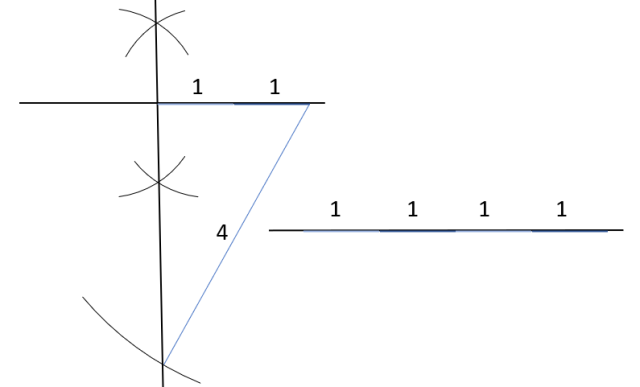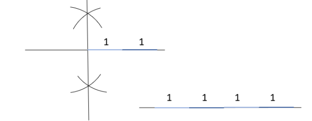 Zakreśl prostą pomocniczą, na której 4 razy odłóż odcinek długości 1.