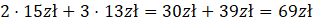 Oblicz cenę przejazdu wyciągiem w obie strony rodzice z trojgiem dzieci w wieku szkolnym, jeśli dla osoby dorosłej kosztuje 15 zł, a dla dzieci jest o 2 zł tańszy.