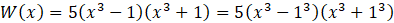 Aby rozłożyć wielomian na czynniki, wyłącz przed nawias 5. Następnie dla wyrażenia w nawiasie zastosuj wzór skróconego mnożenia na różnicę kwadratów. Dla wyrażeń w nawiasach zastosuj wzory na różnicę sześcianów oraz sumę sześcianów.