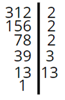 Musisz liczbę 312 rozłożyć na czynniki pierwsze.
