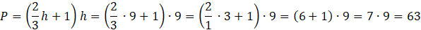 W tym zadaniu musisz zapisać za pomocą wyrażenia algebraicznego pole przedstawionej figury, a następnie obliczyć jego wartość dla h = 9.
