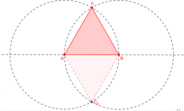 Musisz narysować dowolny odcinek, następnie wbić igłę w jeden koniec, odmierzyć drugim końcem cyrkla do drugiego końca odcinka i narysować okrąg, następnie wbić cyrkiel w drugi punkt i bez zmiany rozwarcia narysować drugi okrąg, ich punkt przecięcia będzie wierzchołkiem trójkąta, wystarczy już tylko połączyć krańce odcinka z punktem przecięcia się okręgów.
