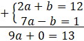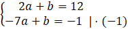 Ten układ równań najszybciej rozwiążesz z metody przeciwnych współczynników. Zauważ, że aby po dodaniu stronami skrócił się b, to wystarczy przemnożyć drugie równanie (lub pierwsze) przez -1.