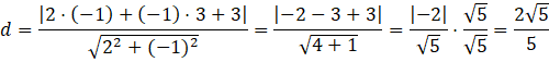 W tym zadaniu musisz wyliczyć w jakiej odległości punkt A = (1, 3) znajduje się od prostej zadanej równaniem 2x – y + 3 =0.