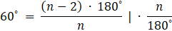 Oblicz, ile boków ma wielokąt foremny o mierze kąta wewnętrznego równej 60˚.