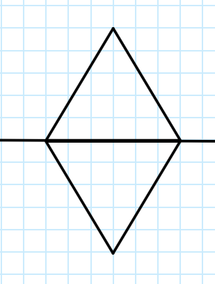 Narysuj trójkąt równoboczny i figurę do niego symetryczną względem prostej zawierającej jeden z jego boków. Odpowiedz, jakie figury utworzyły pary trójkątów symetrycznych względem prostej.