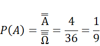 Zauważ, że rzucając każdą kostką, masz 6 możliwości wyrzucenia oczek na każdej z nich. Zgodnie z regułą mnożenia liczba wszystkich przypadków () będzie równa iloczynowi tych opcji. Zdarzeniu A sprzyjają cztery przypadki (zostały wypisane). Prawdopodobieństwo tego zdarzenia oblicz, dzieląc ilość zdarzeń mu sprzyjających przez ilość wszystkich możliwości.