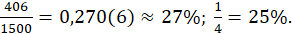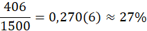 Aby sprawdzić jaką część z wszystkich 1500 aut stanowi tych 406 kierowców, należy podzielić te wartości przez siebie: