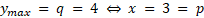 Zauważmy, że funkcja kwadratowa przyjmuje wartość największą równą drugiej współrzędnej wierzchołka (q) dla argumentu p, czyli jego pierwszej współrzędnej. Ze wzoru na p wyznaczamy współczynnik b. Następnie współczynnik c obliczamy, podstawiając obie współrzędne wierzchołka do wzoru funkcji.