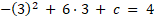 Wyznacz współczynniki b i c, wiedząc, że funkcja kwadratowa f(x) = –x2 + bx + c przyjmuje wartość największą 4 dla x = 3.