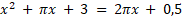 Określ ilość punktów wspólnych paraboli o równaniu f(x) = x2 + πx + 3 oraz prostej g(x) = 2πx + 0,5.