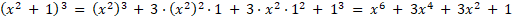 Wyrażenie przekształcamy stosując WSM: (a + b)3 = a3 + 3a2b + 3ab2 + b3.