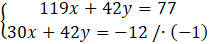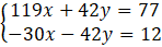 119x + 42y – 30x – 42y = 77 + 12