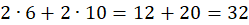 Obwód to suma długości wszystkich boków danej figury. Zauważ, że podany równoległobok ma boki o długości 6 i 10 (2 + 8). Zatem obwód wynosi: