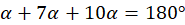 Suma miar kątów wewnętrznych w trójkącie wynosi 180°. Zatem przyrównaj sumę podanych kątów do 180°: