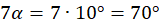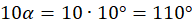 Miary kątów w trójkącie: 10°, 70°, 100°.