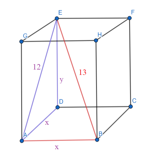 W tym zadaniu oblicz długości krawędzi graniastosłupa prawidłowego czworokątnego wiedząc, że jego przekątna ma długość 13, a przekątna ściany bocznej ma długość 12.