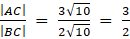 Punkt C dzieli odcinek AB na dwie części. Powinieneś obliczyć długości powstałych odcinków AC i BC oraz podać stosunek ich długości.