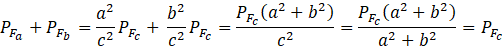 Oblicz skalę podobieństwa boków a i b do boku c, a następnie uzależnij pola figur powstałych na bokach a oraz b od pola figury powstałej na boku c. Potem podstaw do lewej strony równania rozwiązania i doprowadź równanie do jak najprostszej postaci. Zauważ, że z twierdzenia Pitagorasa ta równość jest poprawna: a2 + b2 = c2.