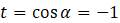 Niech t = cos α. Zbiorem wartości cosinusa jest przedział ⟨-1; 1⟩, zatem: t ∈⟨-1; 1⟩.
