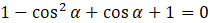 Uprość podane wyrażenie w taki sposób, aby były w nim same cosinusy kąta α. W tym celu zapisz wartość sin2 α jako 1 – cos2 α, co wynika z tożsamości: