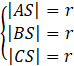 Punkty A, B i C leżą na okręgu, więc odcinki AS, BS i CS są promieniami okręgu. Zatem: