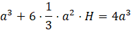 Dany jest sześcian o krawędzi 𝑎, do którego doklejono identyczne ostrosłupy prawidłowe czworokątne na każdej ze ścian. Wyznacz wysokość tych ostrosłupów, dla których otrzymana bryła ma objętość cztery razy większą od sześcianu.