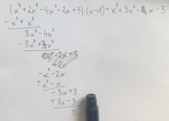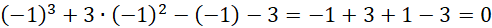 Znajdź pierwiastek całkowity wśród dzielników wyrazu wolnego tj. -3,-1, 1, 3.