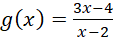 Zauważ, że do dziedziny funkcji g nie należy x=2, zatem jej asymptota pionowa będzie równa x=2. Zapisz wniosek: