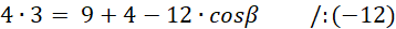 Skorzystaj z twierdzenia cosinusów i oblicz cosinus kąta naprzeciwko tego boku.