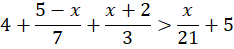 Pomnóż obie strony nierówności razy 21. Następnie uprość wyrażenie po lewej i prawej stronie nierówności. Uporządkuj nierówność – przenieś wszystkie wyrażenia z x na lewą stronę, a wyrazy wolne – na prawo. Zapisz rozwiązanie nierówności jako przedział.
