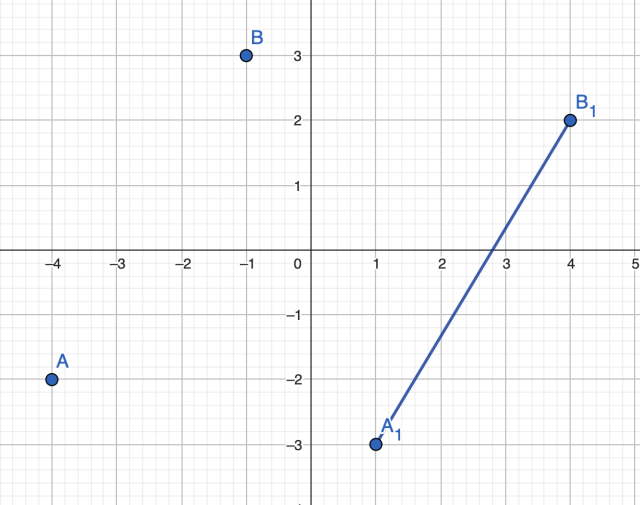 Na początku zaznacz na wykresie punkty A i B, a następnie przesuń je o 5 jednostek w prawo i jedną jednostkę w dół, aby otrzymać punkty