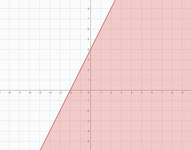 Zaznacz półpłaszczyznę wyznaczaną przez podaną w zadaniu nierówność. Zauważ, że zbiorem rozwiązań układu nierówności może być tylko prosta