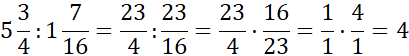 W pierwszej kolejności zamień liczbę mieszaną na ułamek niewłaściwy (tzn. taki, w którym licznik jest większy niż mianownik). Dzielenie ułamków wykonaj, wiedząc, że dzielenie to odwrotność mnożenia tzn. zamień dzielnik (liczba po znaku dzielenia) na jej odwrotność i zamień znak dzielenia na mnożenie. Następnie postępuj tak jak w przypadku mnożenia ułamków. Aby pomnożyć ułamki dokonaj skrócenia ułamków (po skosie, jeżeli to możliwe), a następnie wykonaj mnożenie. W celu wykonania mnożenia, przemnóż przez siebie liczniki oraz mianowniki. Pamiętaj, że kreska ułamkowa zastępuje znak dzielenia. Zapisz ułamek w postaci liczby mieszanej.