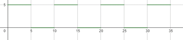 Wykres funkcji naszkicuj w układzie współrzędnych w taki sposób, że na osi x przedstawisz czas w sekundach, a na osi y wartość dodatnia będzie oznaczała zapalone światło, wartość równa 0 – zgaszone światło.