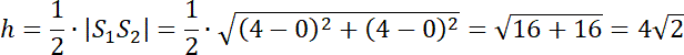. Oblicz długość odcinka |AB| ze wzoru na długość odcinka. Wysokość h będzie połową odcinka