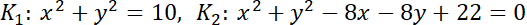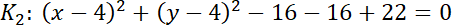 Zacznij od zapisania równań czterech okręgów w postaci kanonicznej. Następnie wylicz punkty wspólne okręgów. Wykonaj rysunek pomocniczy. Zauważ, że pole czworokąta można obliczyć jako dwa pola trójkąta
