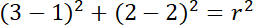 W tym zadaniu musisz wyznaczyć równanie okręgu o środku (1, 2), do którego należy punkt (3, 2).