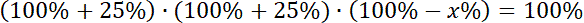 Ustal, o ile procent należałoby obniżyć cenę pewnego towaru, by kosztował tyle co na początku, jeśli jego cenę podniesiono dwukrotnie o 25%.
