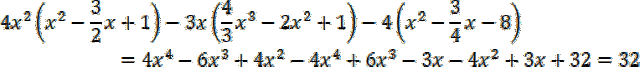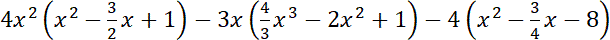 Pomnóż każdy wyraz znajdujący się w nawiasie przez jednomian stojący przy nim i zredukuj wyrazy podobne, czyli dodaj/odejmij jednomiany podobne. Zauważ, że wynikiem jest liczba całkowita, która nie zależy od wartości