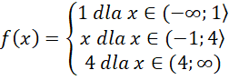 Rysowanie wykresu rozbij na trzy etapy. Najpierw naszkicuj wykres górnej i dolnej funkcji. Zauważ, że są one odcinkami równoległymi do osi OX na poziomach