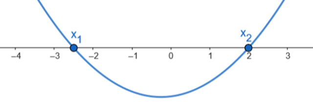 Na koniec wyznaczone rozwiązania zaznacz na osi OX i narysuj parabole o ramionach skierowanych w górę, jeśli współczynnik