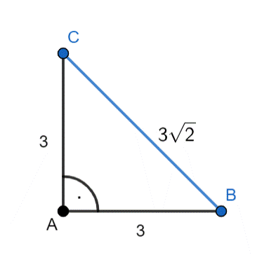 –na koniec połącz punkt B i C, dzięki czemu powstał trójkąt prostokątny równoramienny, a przyprostokątna |BC| = 3√2