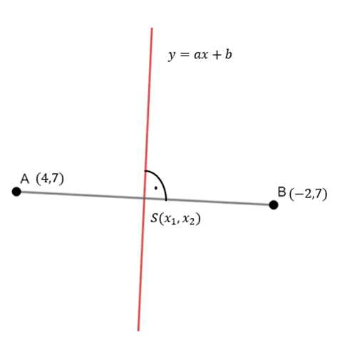 Symetralna odcinka: y = ax + b, gdzie: