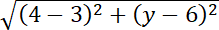 Wiemy, że jeden z wierzchołków (oznaczmy go jako ma współrzędne A(3, 6), natomiast punkt przecięcia przekątnych należy do prostej x = 4, zatem S(4, y). Wiemy, że odległość od punktu A do punktu S to połowa długości przekątnej kwadratu zatem: